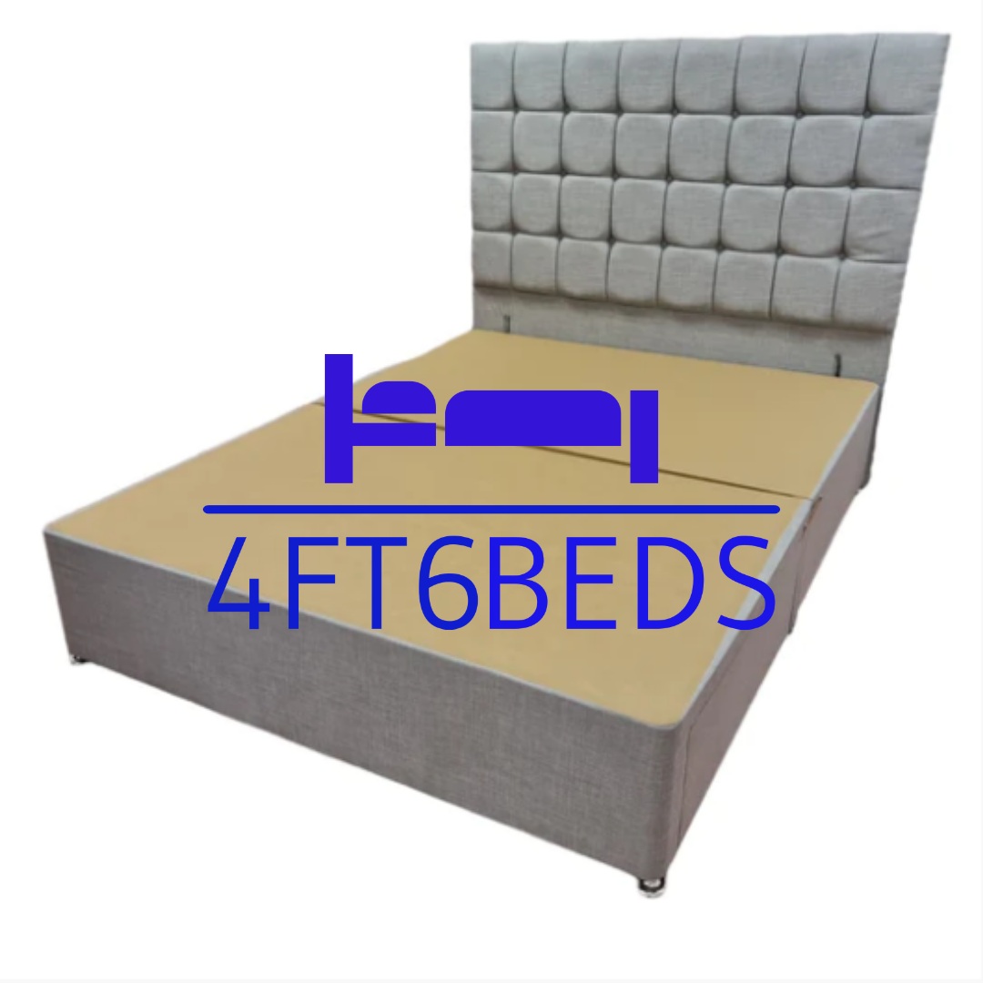 Introducing the Aztec divan bed with tall headboard – modern upholstered divan bed finished with a tall 54″ deep padded Aztec cube design headboard.
