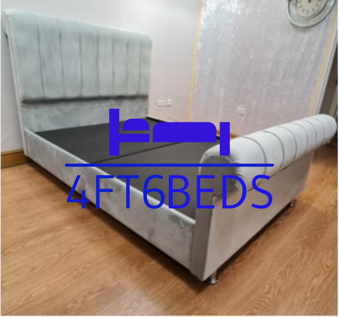Charlotte Scroll Frame is a beautiful minimalist bed. Traditional sleigh bed with modern upholstered head and foot board.